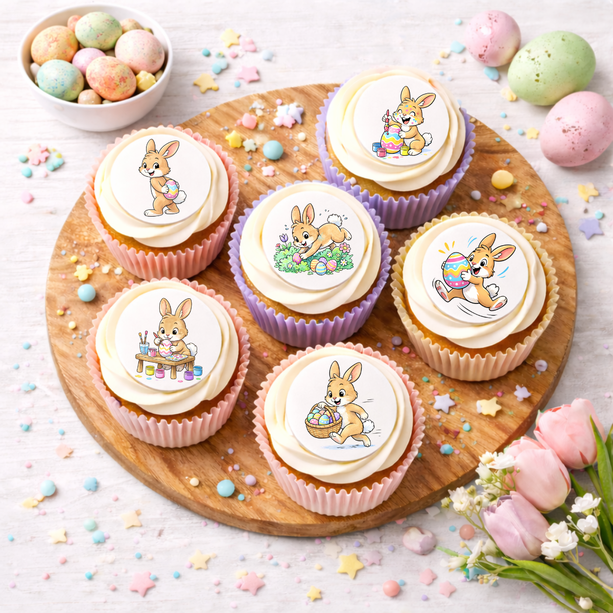 Mit diesen 24 essbaren Comic-Auflegern bringst du im Handumdrehen fröhliche Osterstimmung auf den Tisch – perfekt für Kinder und Familien.